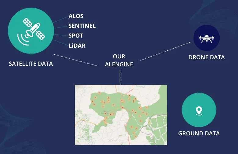 We turn satellite data into actionable insights for forest carbon credits. Our AI-powered platform monitors vast forests in real time, visualizing changes invisible to the human eye.